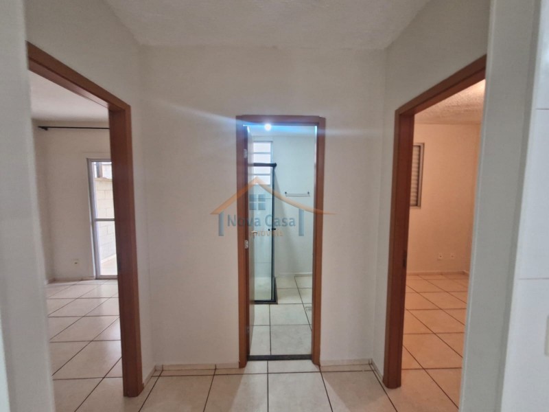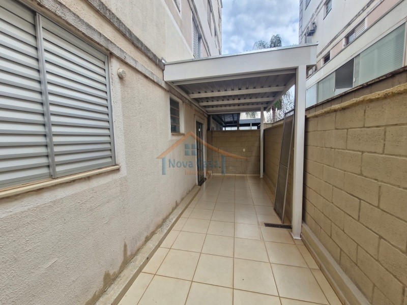 Apartamento térreo de dois dormitórios, sala, cozinha e banheiro social com box blindex, o apartamento possui dois quintais, sendo um com acesso pela cozinha e outro com acesso pelo quarto, uma vaga de garagem. Condomínio oferece; portaria 24 horas, piscina, salão de festa, quiosques com salão para churrasco ou festas e academia.
