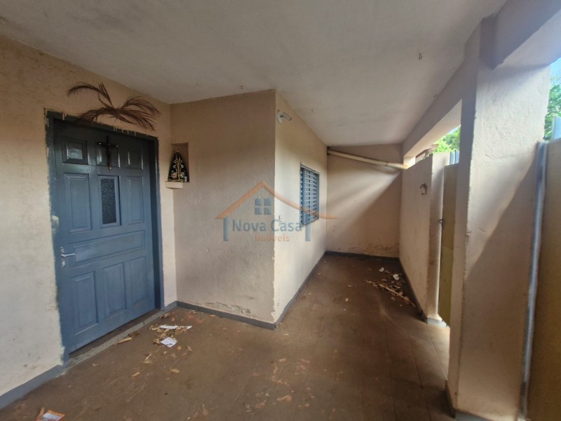 Casa com alpendre, sala, dois dormitórios, banheiro, cozinha com pia e gabinete, garagem para 03 carros, despensa nos fundos, quintal grande.