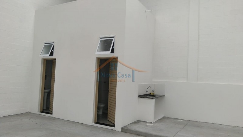 Pé direito alto, 2 salas amplas de escritório, piso porcelanato, 5 banheiros, refeitório, copa, portão articulado 5 m entrada para carretas.