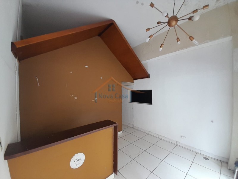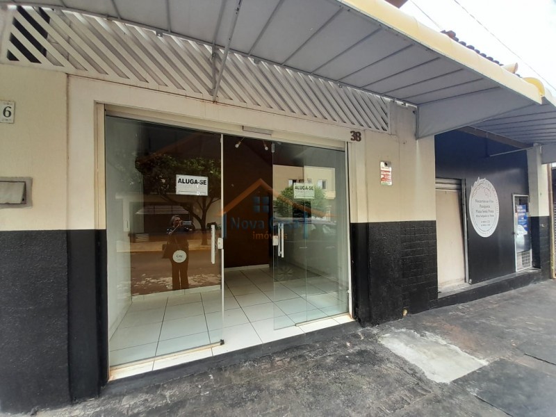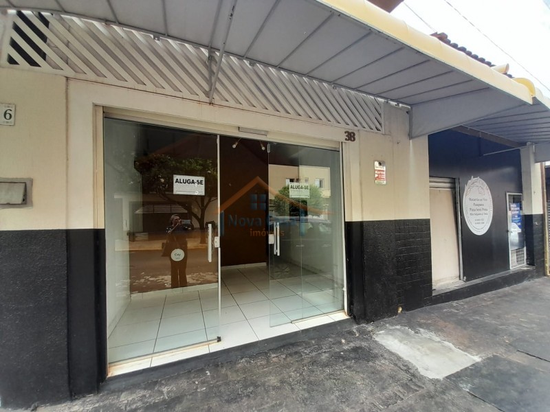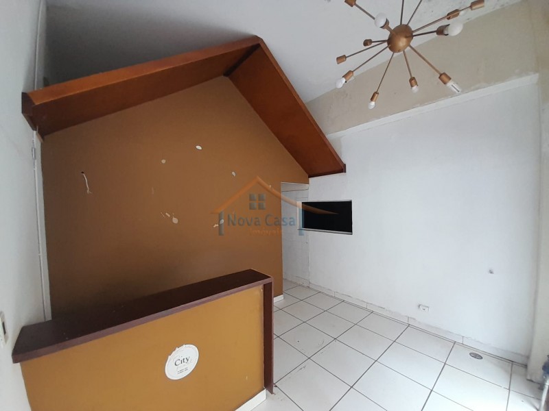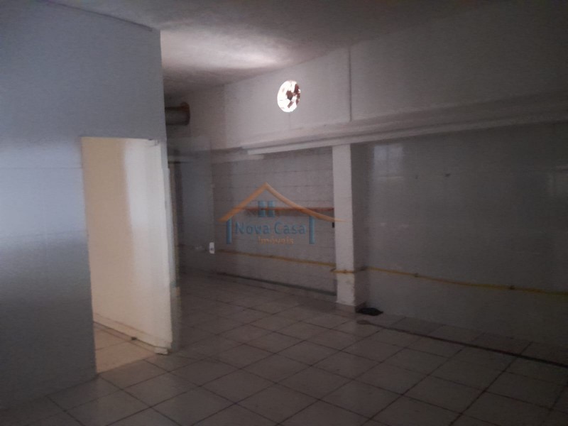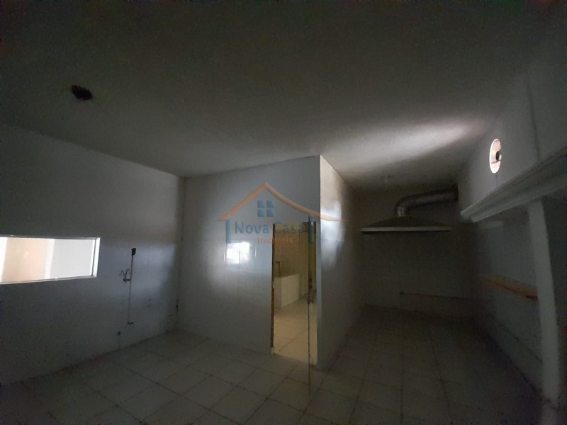 Salão comercial com 85 metros quadrados, recepção, cozinha adpatada para área de alimentação, dois banheiros, porta de blindex e porta de enrolar.